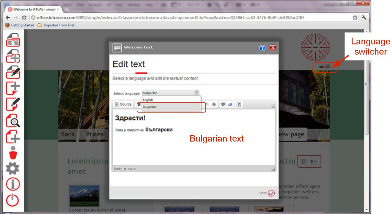 We have changed the text in Bulgarian (Picture 17), closed the wizard by clicking on the “Done” button and changed the website language from the language switcher. You can see the result in picture 18.