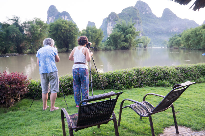 Разположено на брега на не-толкова-могъщата, но също толкова кафявата река Юлонг (юлонг = дракон) и далеч от тълпите на града, това хотелче наистина е „retreat“. Взехме си по едно колело и нашето пътешествие в Китай наистина започна!