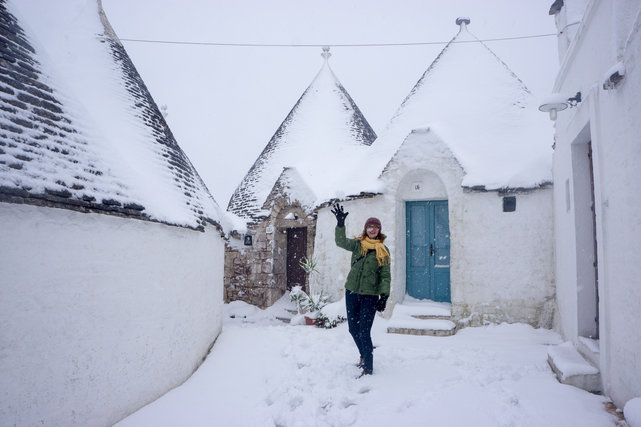 Взехме си кола под наем и отидохме в Алберобело, където пак валеше. Но пък собственика на трулото, в което спахме, каза, че на следващия ден щяло да вали сняг. Не му повярвахме :) Алберобело е готино, но в този сезон няма много работещи кафенета, сладкарници и ресторанти.